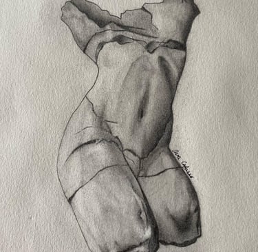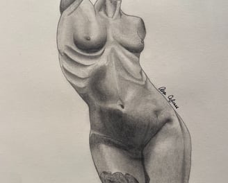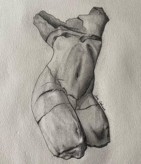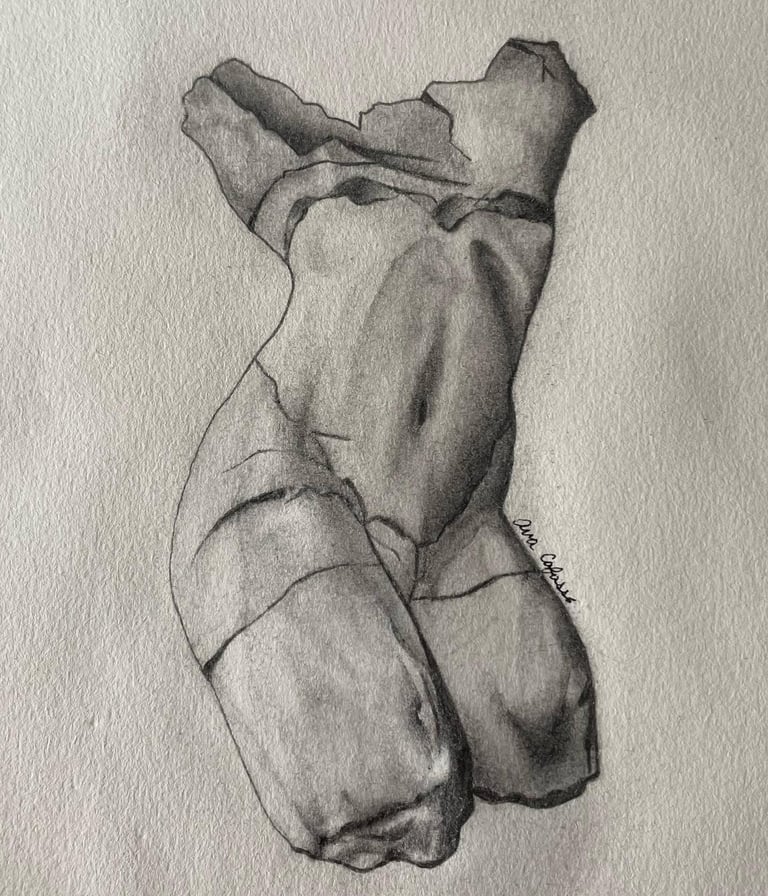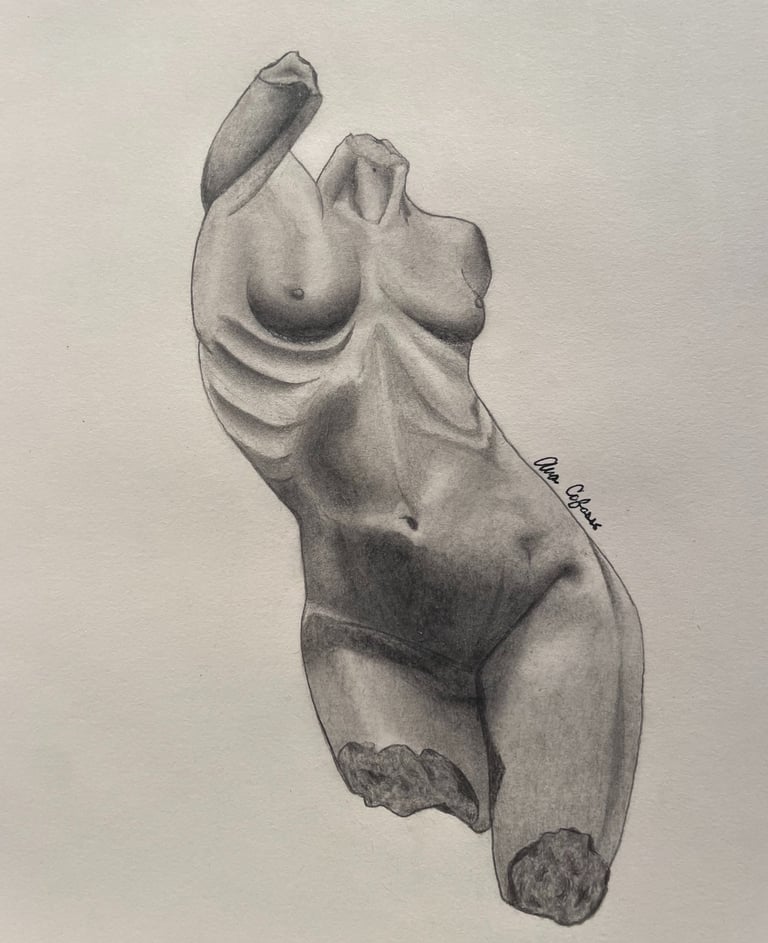 Another drawing based on the sculpture work of Magdalena Thorlarsen found on Pinterest was an attempt at drawing the complicated female figure while showcasing highlighting and shading work, as well as the intricate visual components of the original medium of clay based sculptures.