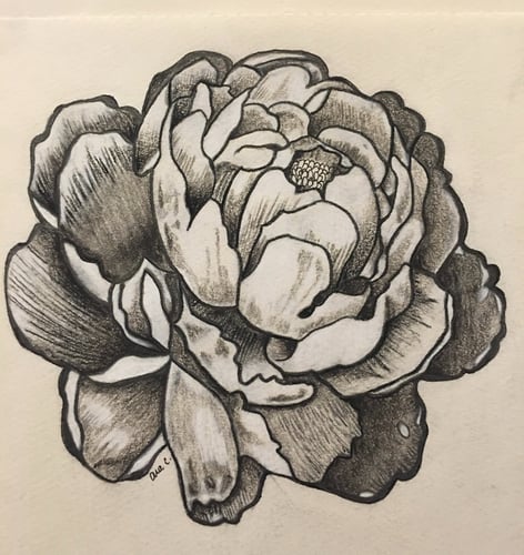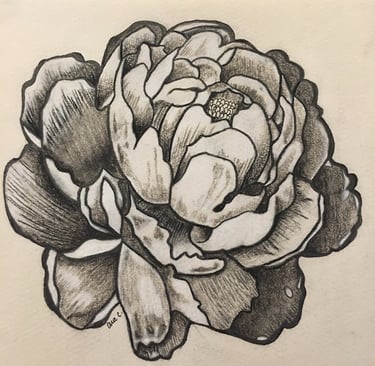 Derived from my love of all things flowers and due to a personal connection with peonies, this piece is a simple black-and-white depiction of a backyard peony.